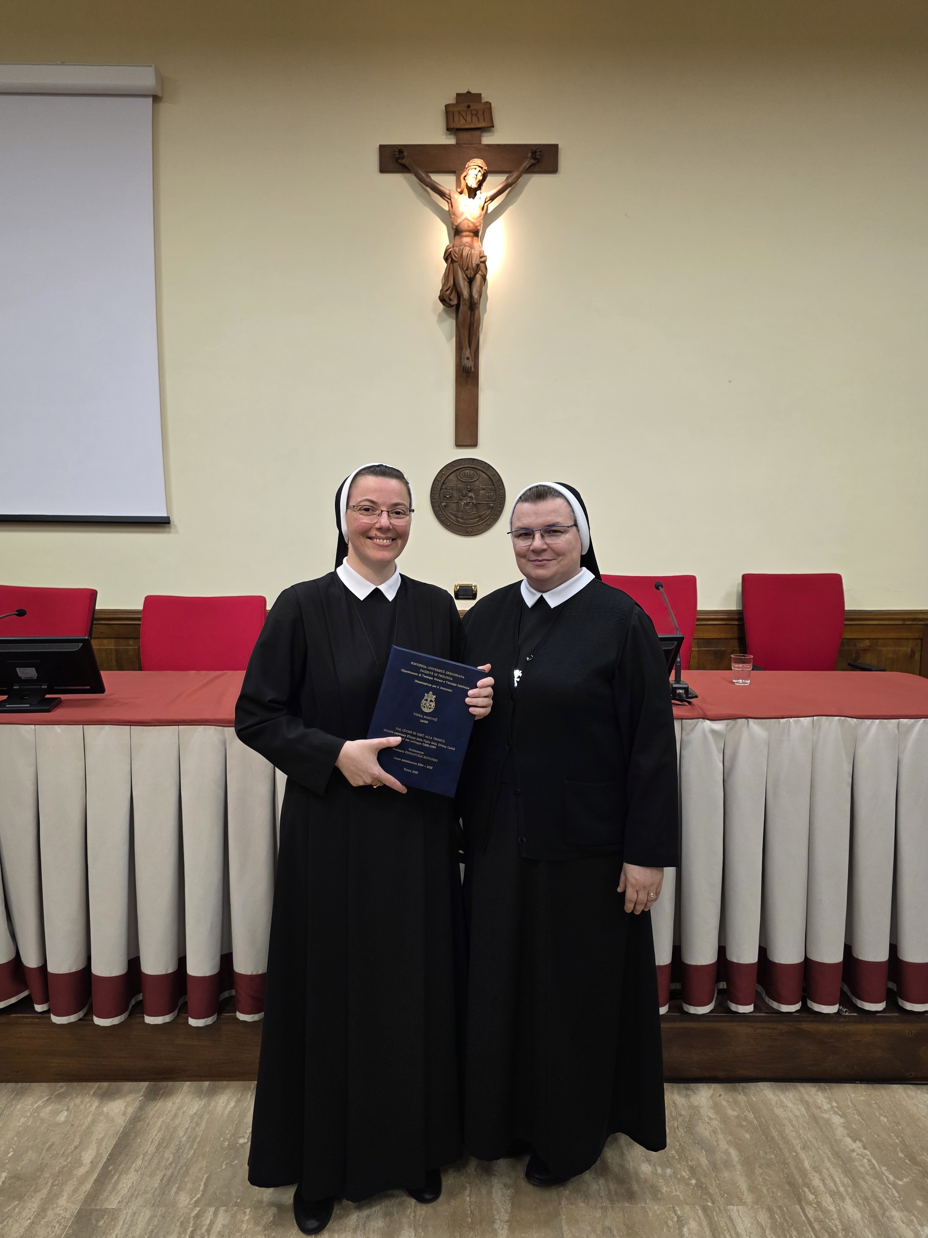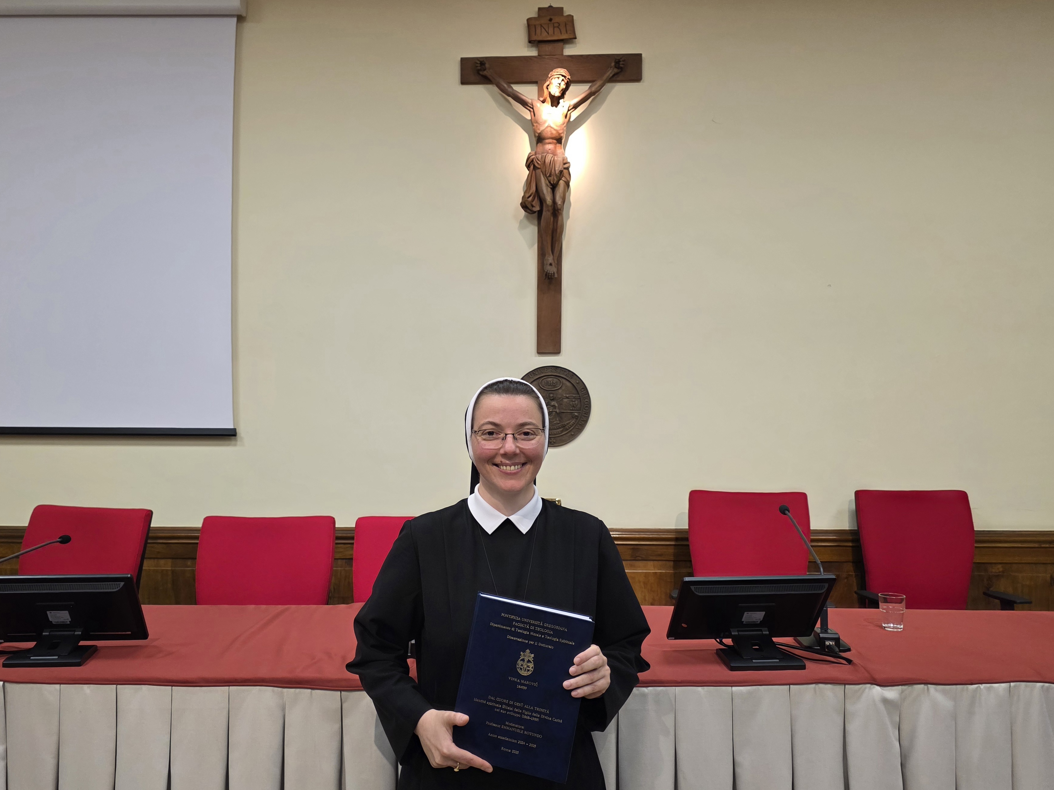 Sestra Vinka Marović obranila je 3. studenog 2025. na Teološkom fakultetu Papinskog sveučilišta Gregoriana u Rimu doktorsku disertaciju iz područja duhovne teologije. Tema rada je „Od Srca Isusova do Trojstva. Duhovni (sinovski) identitet Kćeri Božje ljubavi u njegovu razvoju (1868.–1989.)“. [Dal Cuore di Gesù alla Trinità. Identità spirituale (filiale) delle Figlie della Divina Carità nel suo sviluppo (1868-1989)]. Uz mentora prof. dr. sc. Emmanuela Rotunda u ispitnom povjerenstvu bili su prof. dr. sc. Dariusz Kowalczyk, DI, kao cenzor te prof. dr. sc. Tibor Bartók, DI, kao predsjednik komisije.