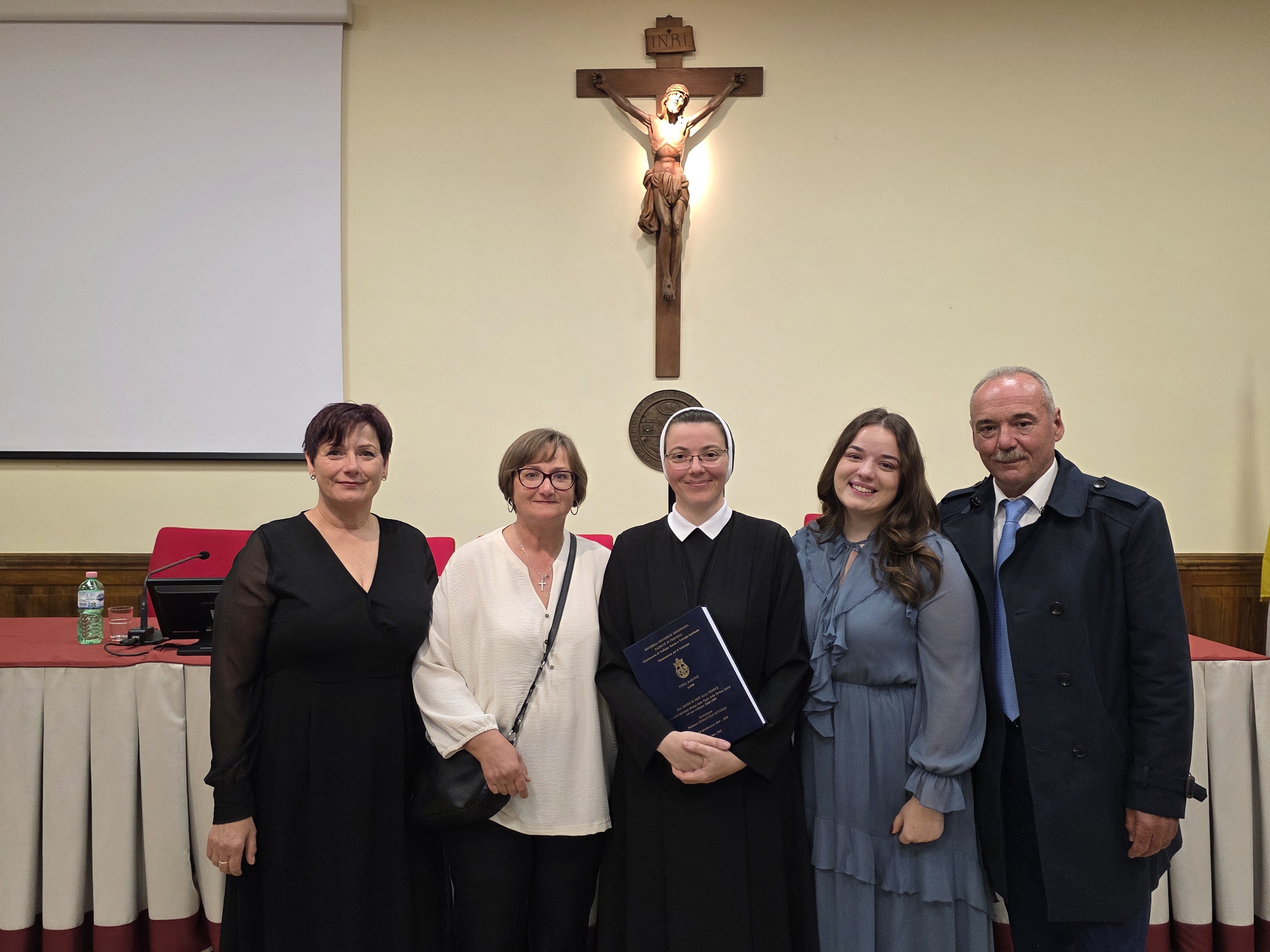 Javnoj obrani doktorskog rada s. Vinke nazočili su roditelji, otac Tonči i majka Fanita, sestra Vana i teta Elenka Popović. Obrani su također nazočile članice Generalne uprave i Generalne kuće predvođene vrhovnom glavaricom s. Ivanom Margarin kao i s. Nevenka Jurak, provincijalna glavarica Provincije Božje providnosti, čija je s. Vinka članica, te s. M. Tea Barnjak, provincijalna savjetnica i tajnica.