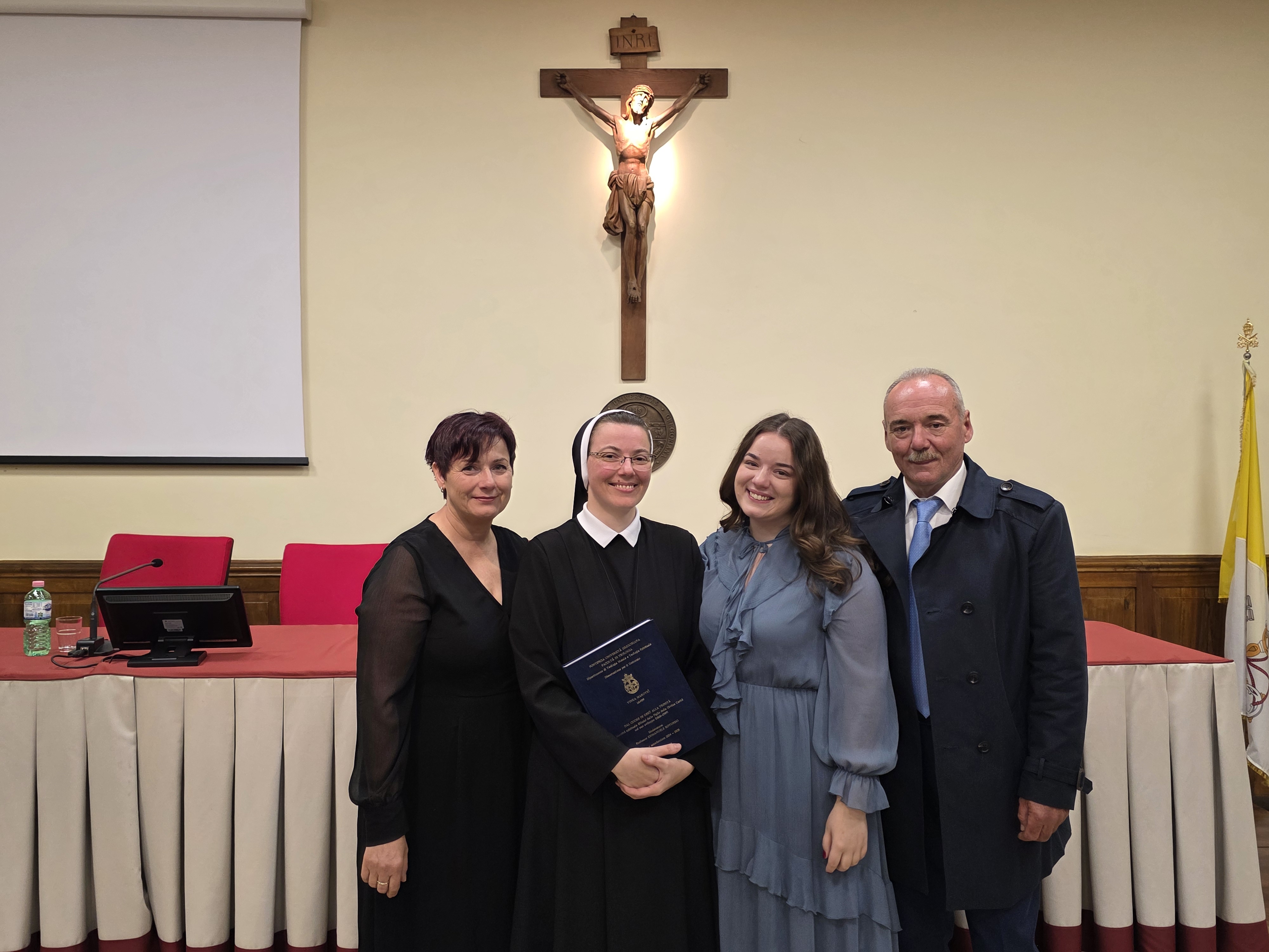 Dana 3. studenog 2025. na Teološkom fakultetu Papinskog sveučilišta Gregoriana u Rimu obranila je doktorsku disertaciju iz područja duhovne teologije pod mentorstvom prof. dr. sc. Emmanuela Rotunda na temu: „Od Srca Isusova do Trojstva. Duhovni (sinovski) identitet Kćeri Božje ljubavi u njegovu razvoju (1868.–1989.)“.