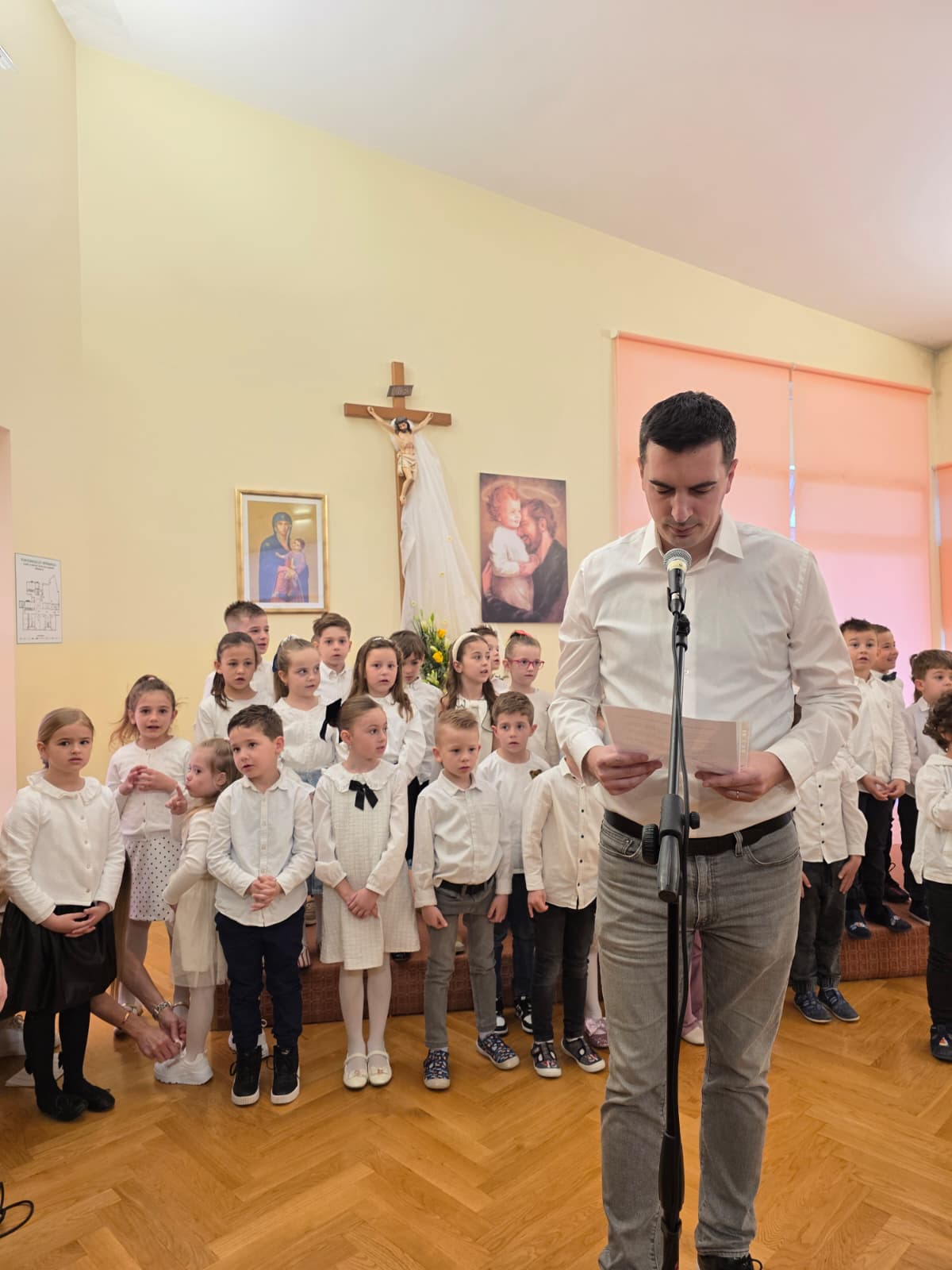 Nakon euharistijskog slavlja prigodni program, uz podršku svojih odgojitelja, izvele su „Ribice“, djeca mlađe mješovite skupine, i „Leptirići“, djeca starije mješovite skupine. Pjesmom i recitacijama obratili su se svojim očevima čestitajući im „Dan očeva“.