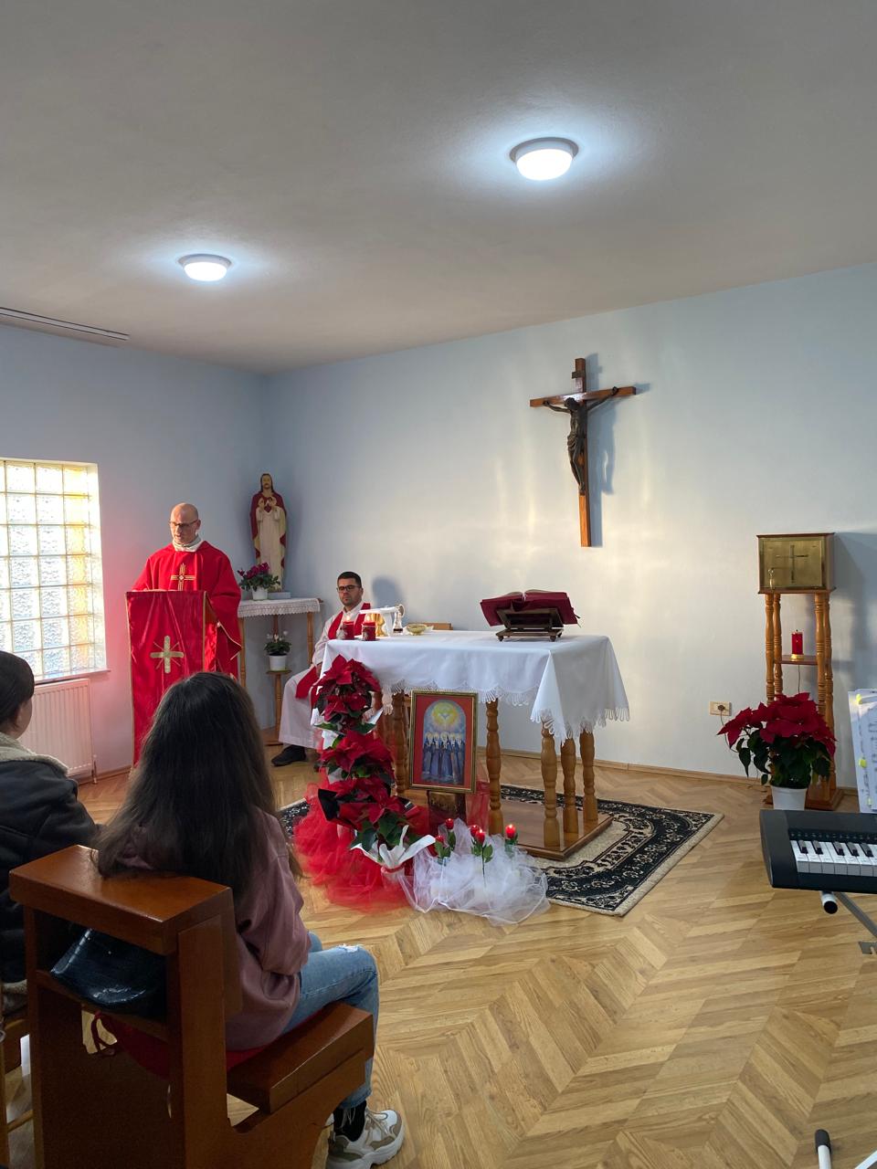 U zajednici u Skadru na trodnevnici su sudjelovale razne skupine vjernika, dok je u Grude e Re trodnevnica održana u župnoj crkvi zajedno s narodom. Na sam blagdan slavlje je nastavljeno u kapelici s najbližim suradnicima. U zajednici sv. Josipa u Skadru svetu misu slavio je don Gjovalin Simoni, direktor Radio Marije, a u zajednici u Grude e Re župnik pater Agustin Margjoni, lazarist.