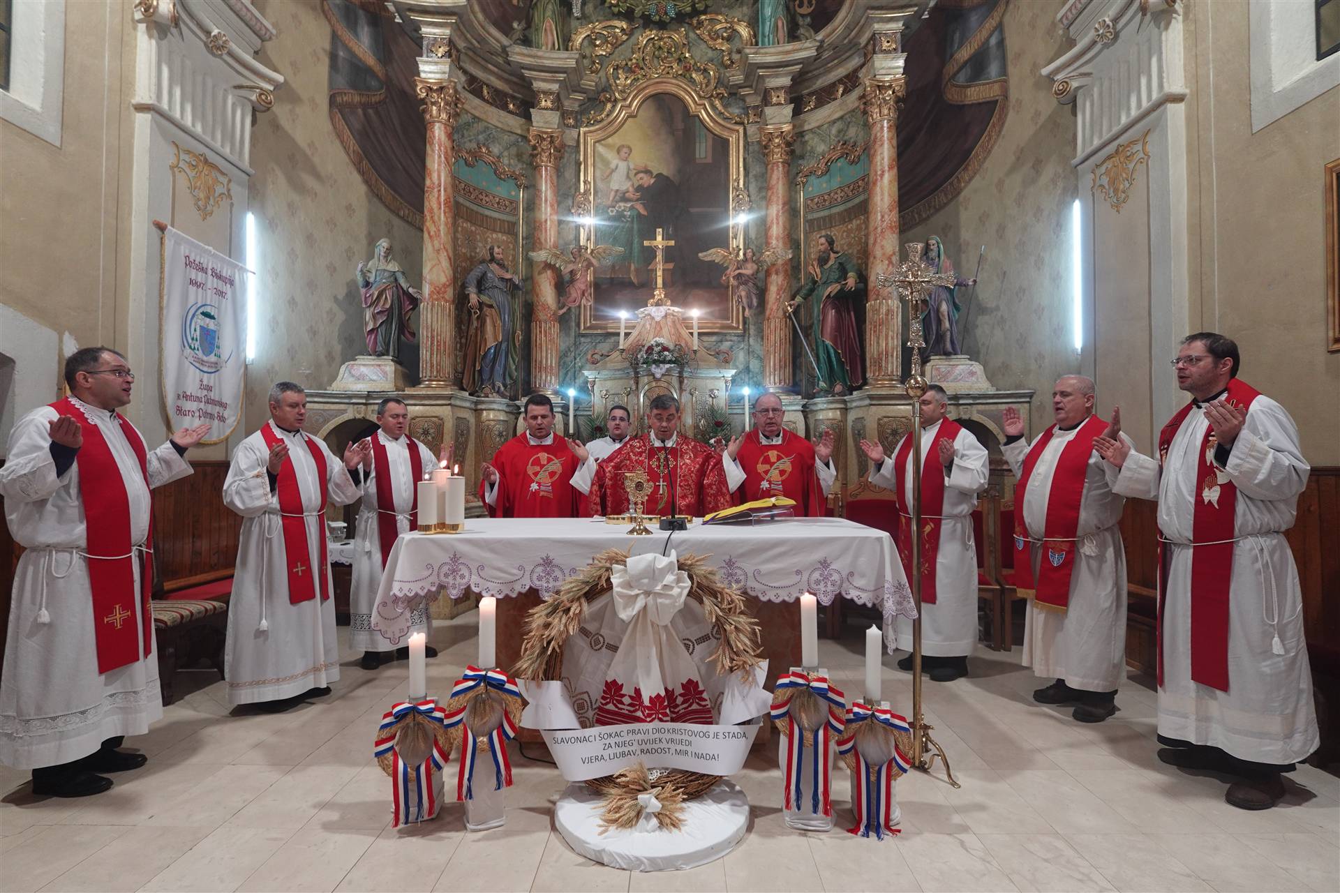 Euharistijsko slavlje u župnoj crkvi sv. Antuna Padovanskog u Starom Petrovom Selu, rodnoj župi blažene s. M. Jule, prigodom proslave spomendana bl. Drinskih mučenica predvodio je mons. Ivo Martinović, požeški biskup, uz koncelebraciju preč. Dragana Hrgića, župnika Župe sv. Nikole u Pleternici i rektora Svetišta Gospe od Suza, vlč. Maria Cimbala, domaćeg župnika, te još sedam svećenika.