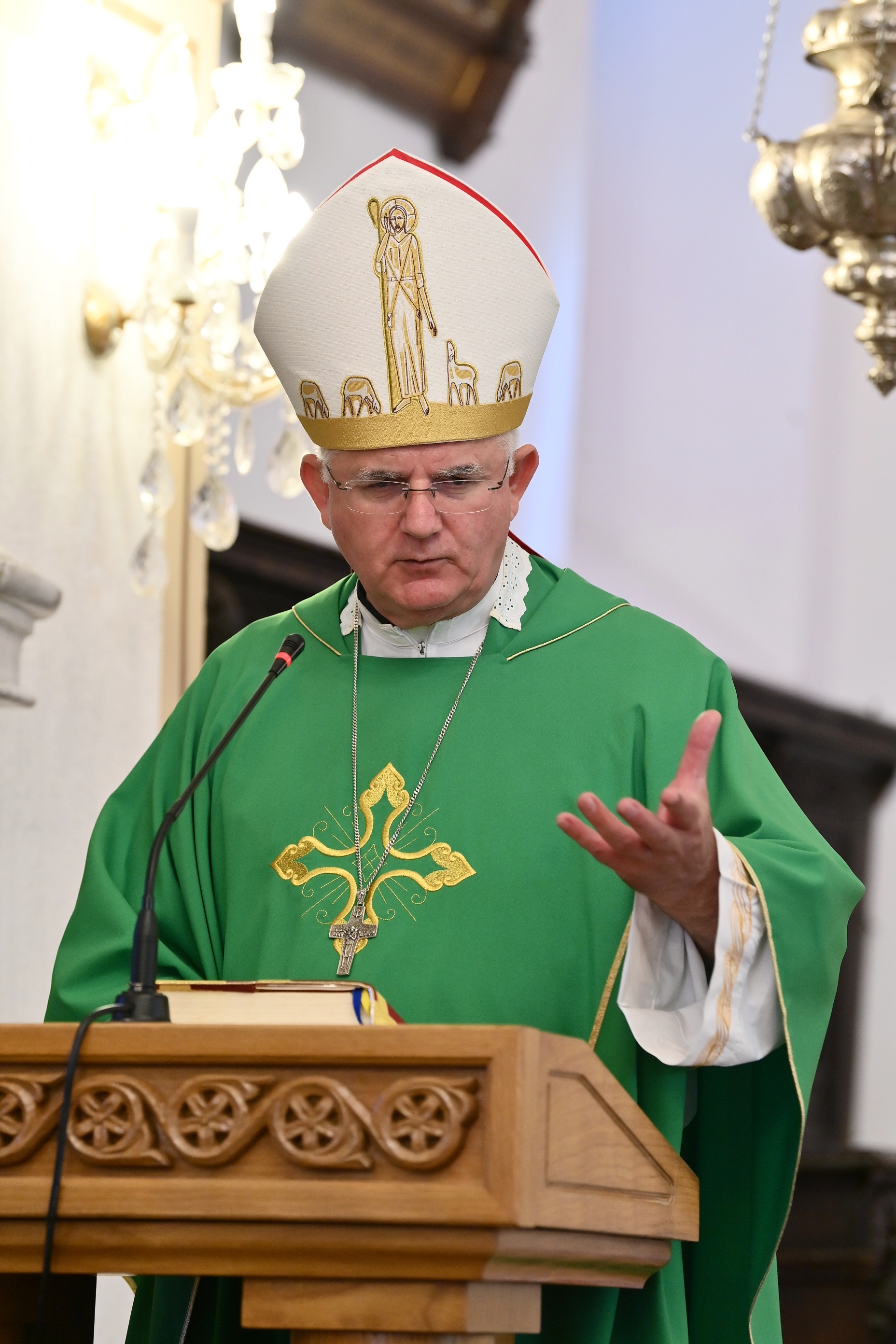Na početku euharistijskog slavlja nadbiskup Mate sestrama je poručio da darove redovništva, vjere i ljubavi koje su primile od Boga, uvijek nastave darivati drugima. U kontekstu slavlja 28. nedjelje kroz godinu, koja je ove godine Dan zahvale za Božja dobročinstva, pozvao je sestre i vjernike da ono što im je od Boga darovano postane njihovo poslanje drugim ljudima. Podsjetio je i na riječi pape Lava XIV. koje je prilikom nedavnog susreta uputio hrvatskim hodočasnicima: „Vjera je dar koji se umnaža dijeljenjem. Jednako kao i ljubav.“ Nadbiskup je u nadahnutoj homiliji govorio o zahvalnosti, zajedništvu, Kristovoj vječnoj prisutnosti te ozdravljenju i opraštanju grijeha jer svaki je čovjek grješan. Učinio je to tumačeći prispodobu o čudesnom ozdravljenju desetorice gubavaca. „Ako bi promatrali Isusa kao čudotvorca pogrešno bi ga protumačili“, rekao je Nadbiskup objasnivši da se takva čuda tijekom povijesti čovječanstva događaju vrlo rijetko, a Krist je ipak uvijek prisutan. „Moramo pronaći pravo značenje poruke evanđelja: što bismo mi danas morali činiti kako bi Bog po nama nastavio činiti čudesna djela.“ Govoreći o ozdravljenju, koje zapravo znači obraćenje, istaknuo je kako se ono ne događa u trenutku nego na putu. „Obraćenje je put, događa se cijeli život. Ne možemo reći da smo dovršeni, nego moramo svaki dan raditi na sebi i na odnosu s drugima.“ Zahvalnost evanđeoskog gubavca Isusu tema je koja je nadbiskup izravno povezao sa slavljem jubileja sestara. „Za ovih 50 godina u Kastvu ponajprije Bogu mogu zahvaliti sestre. One su od Boga primile dar i taj dar prenosile dalje župljanima ove župe. Zahvaliti mogu i oni što su po sestrama mogli primati Božji dar. Ali Božja dobročinstva nas pozivaju ne samo na zahvaljivanje nego i na djelovanje, na dijeljenje tog dara drugima“, zaključio je nadbiskup.