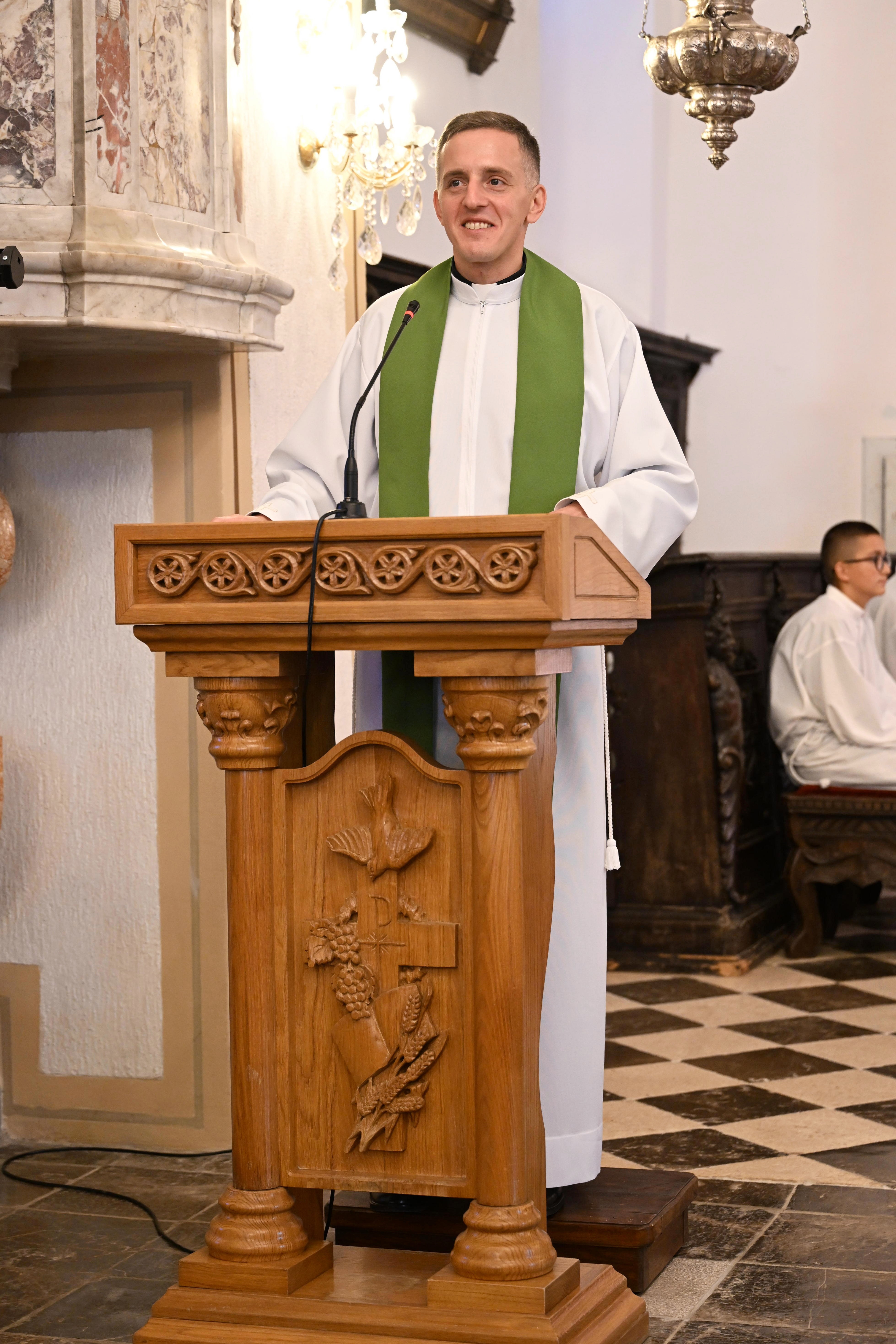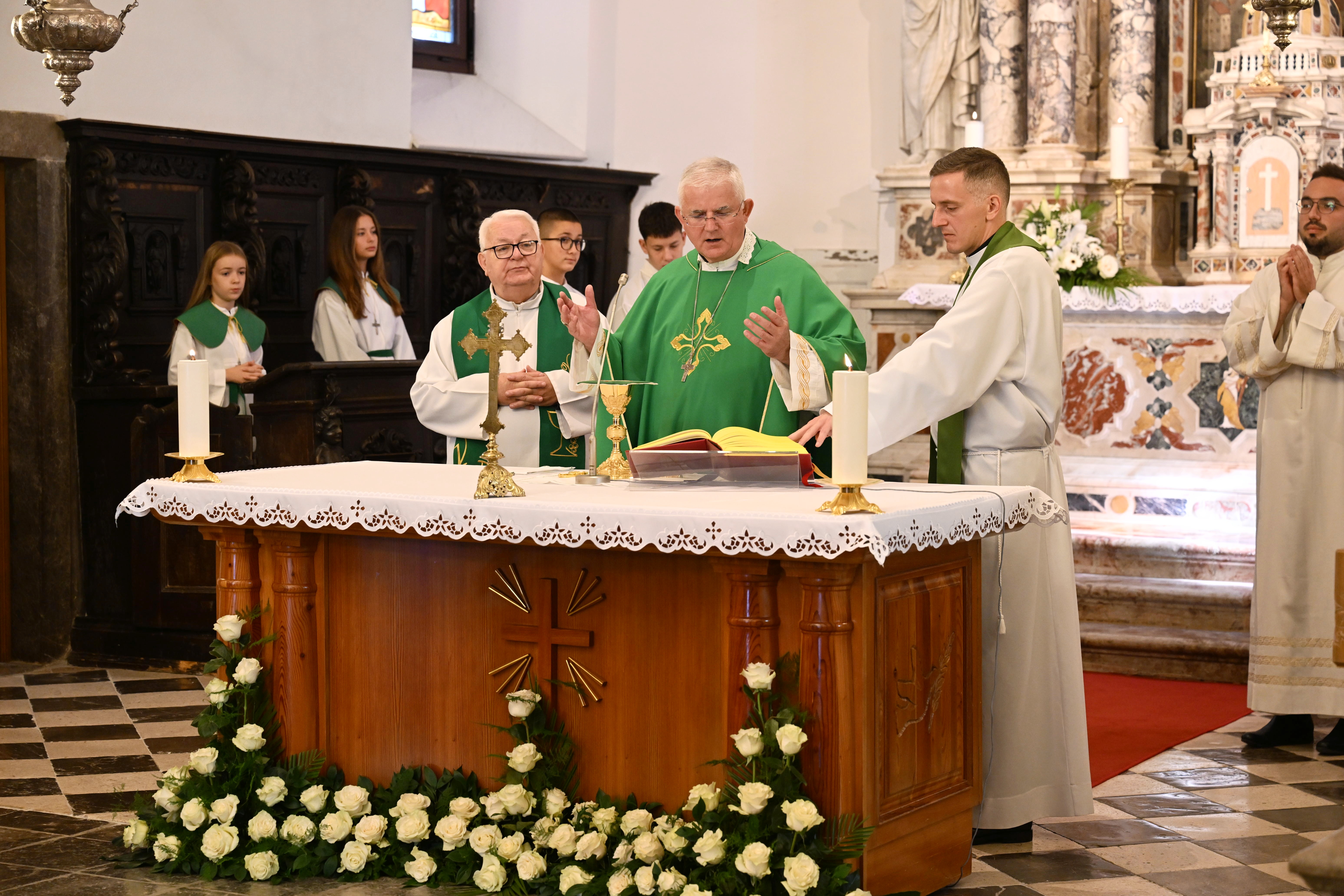 Zahvalno euharistijsko slavlje prevodio je mons. Mate Uzinić, riječki nadbiskup i metropolit, uz koncelebraciju domaćeg župnika vlč. Nikole Gajića i p. Stjepana Bolkovca, salezijanca.