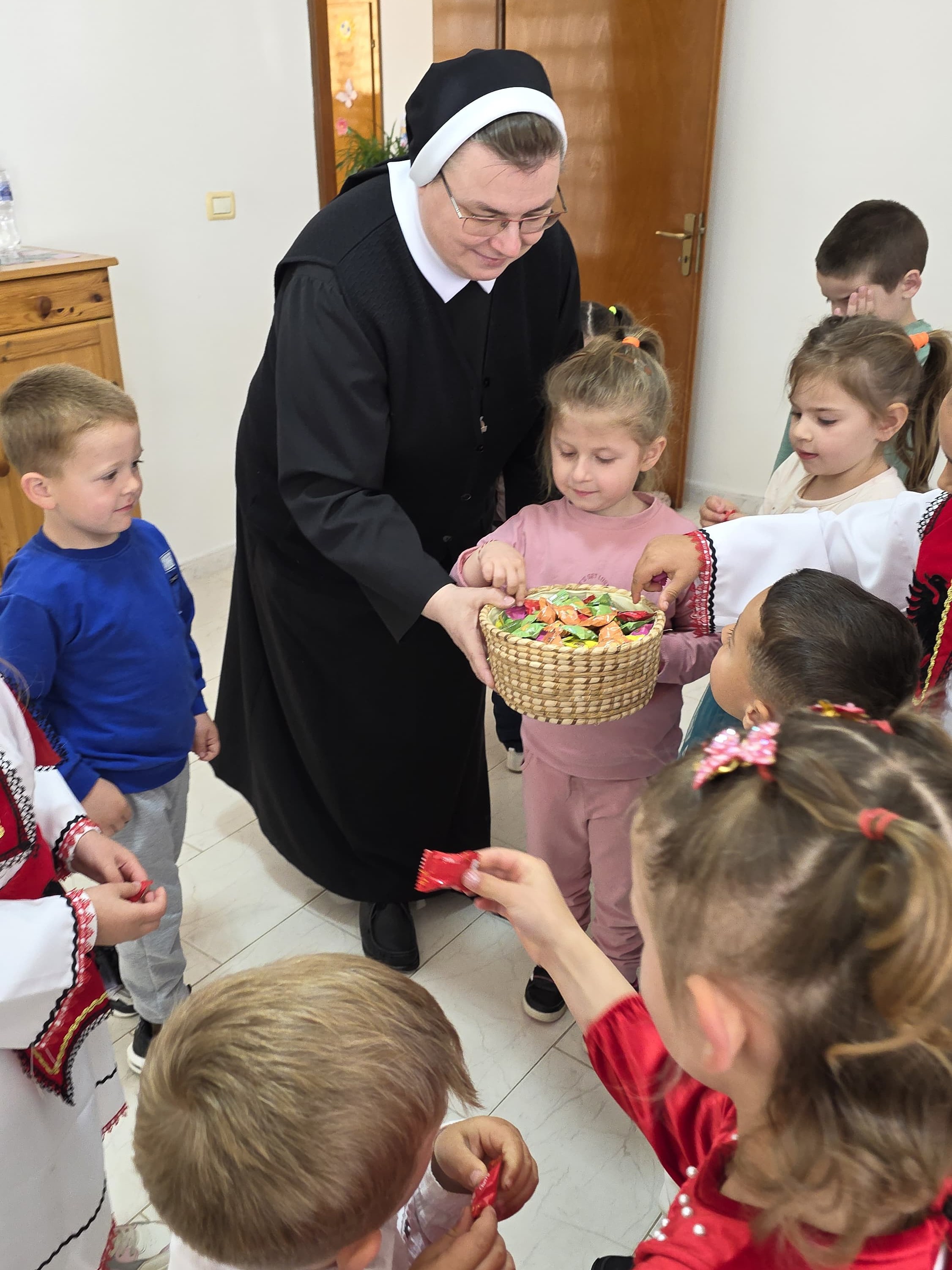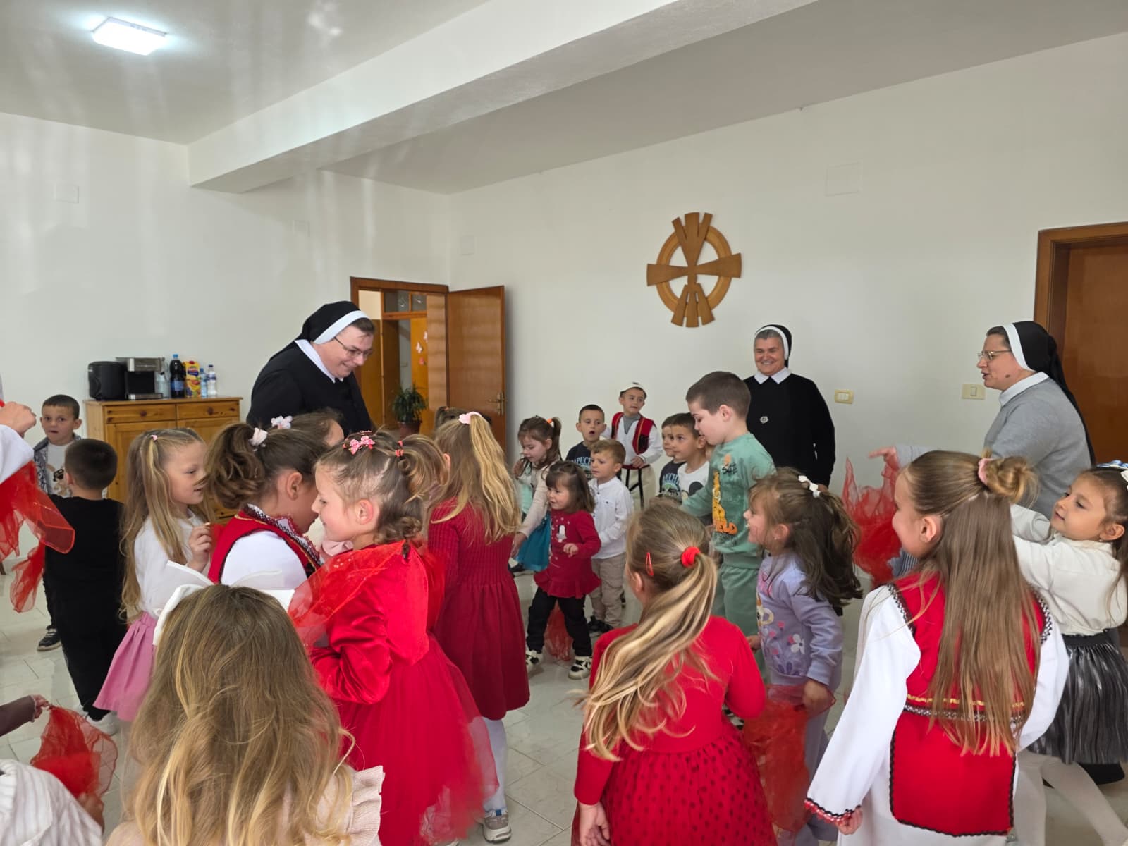 Dana 23. travnja 2026. sestre Samostana Presvetog Srca Isusova i vrtićka djeca iz Gruda e Re (Albanija) izrazila su svoju dobrodošlicu s. Nevenki Jurak, provincijalnoj glavarici, i s. M. Tei Barnjak, provincijalnoj savjetnici i tajnici, povodom kakonske vizitacije spomenute zajednice.